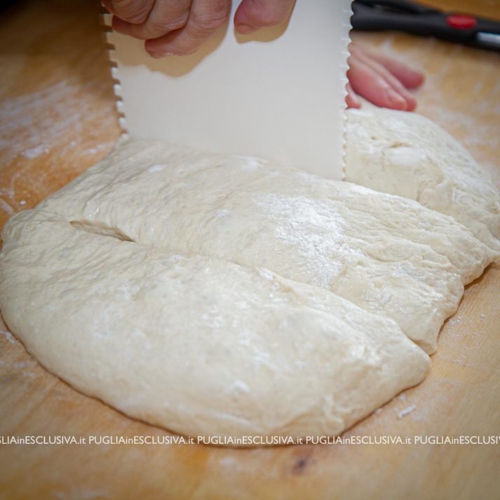 Successivamente adagiate l’impasto su una spianatoia e dividetelo in almeno 3 parti uguali per ottenere baguette di medie dimensioni;