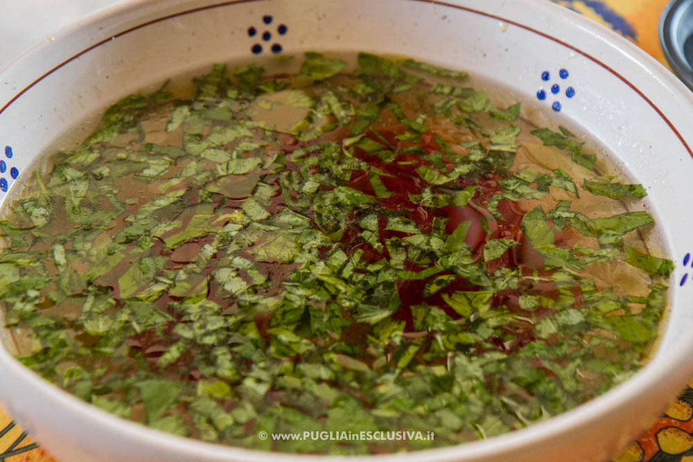 Prepara una coppa con acqua, un pizzico di sale, 1 spicchio d’aglio, basilico e aceto di vino;