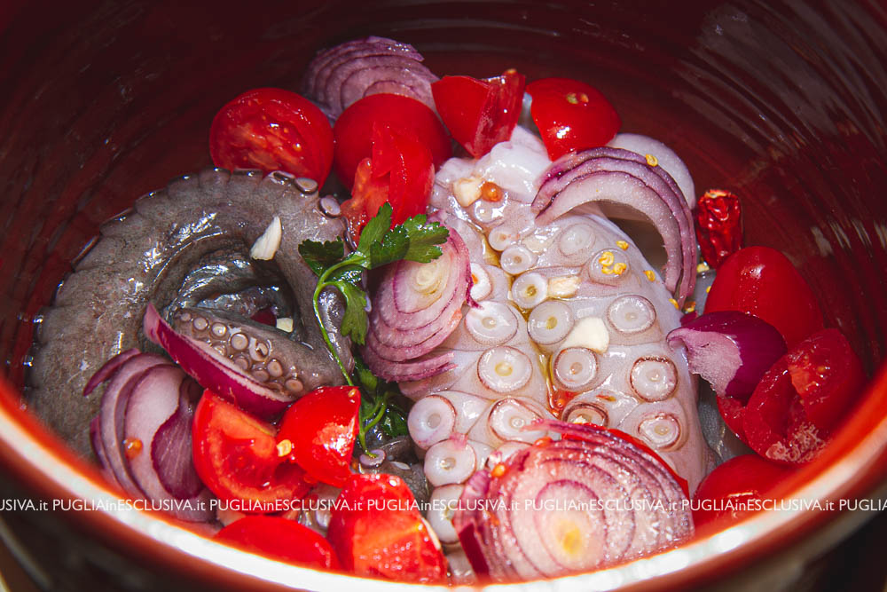 Il polpo all’acqua sua è un piatto estremamente facile da preparare, con pochi armoni e un buon polpo fresco è possibile assaporare tutto il sapore della Puglia e con una pignatta in terracotta o una pentola ben sigillata garantiamo un sapore unico. Il polpo all’acqua sua è un piatto da gustare tiepido e con il suo sughetto puoi anche preparare dei buonissimi spaghetti al sapore di polpo.